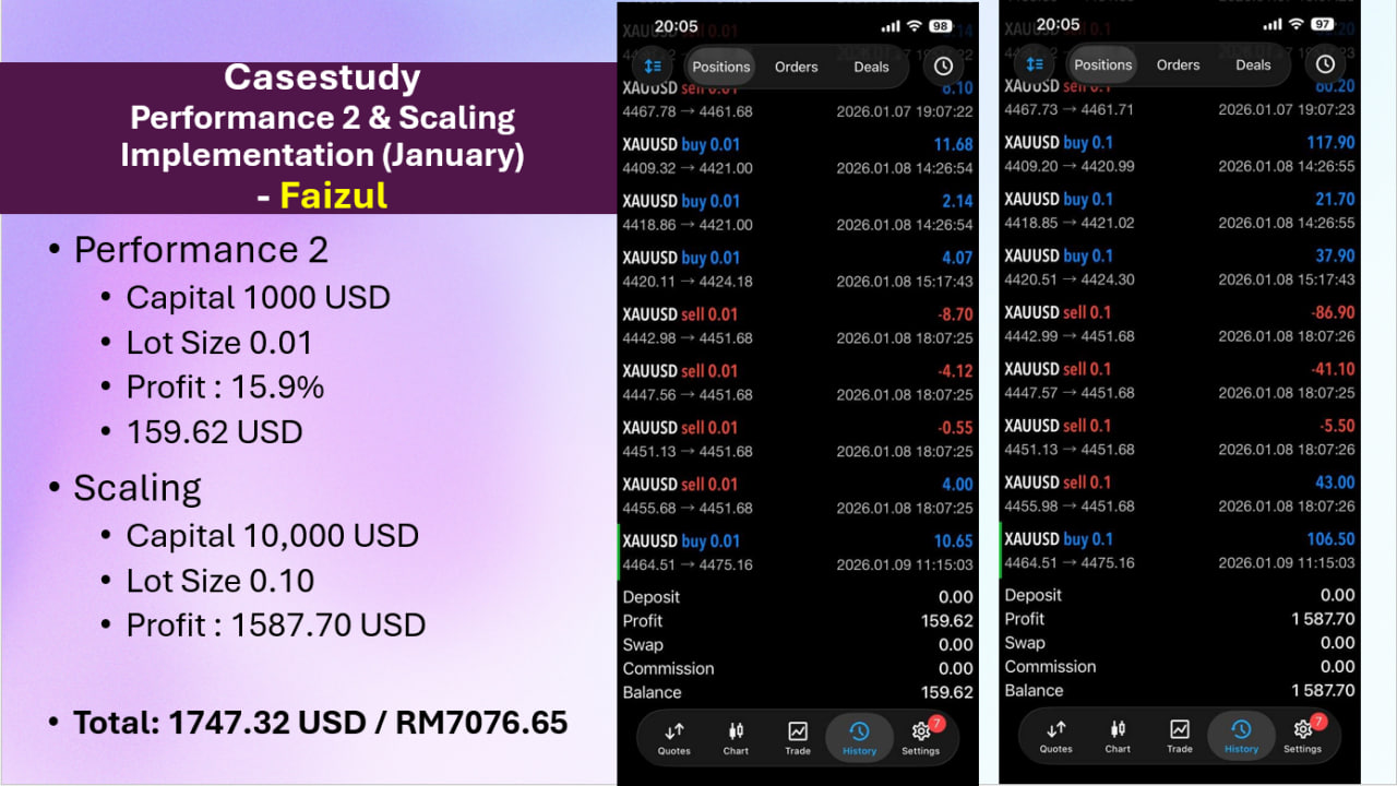 Bila keuntungan sudah konsisten, barulah masuk fasa Scaling Profit – gandakan hasil dengan strategy yang lebih agresif tetapi masih dalam kawalan risiko yang jelas.